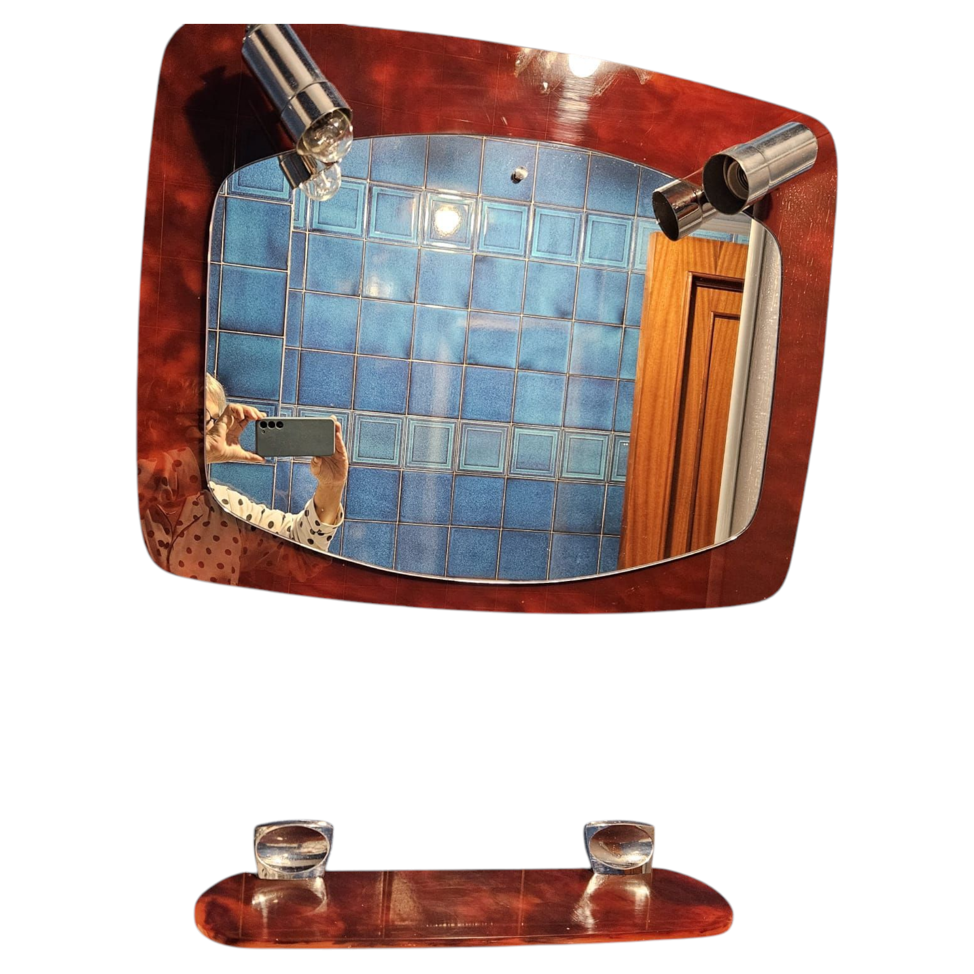 Set de accesorios vintage únicos para tu baño. Compuesto de Espejo con marco de carey color caramelo con dos apliques incluidos. Medidas del espejo 57cm de alto x 72 cm de ancho.