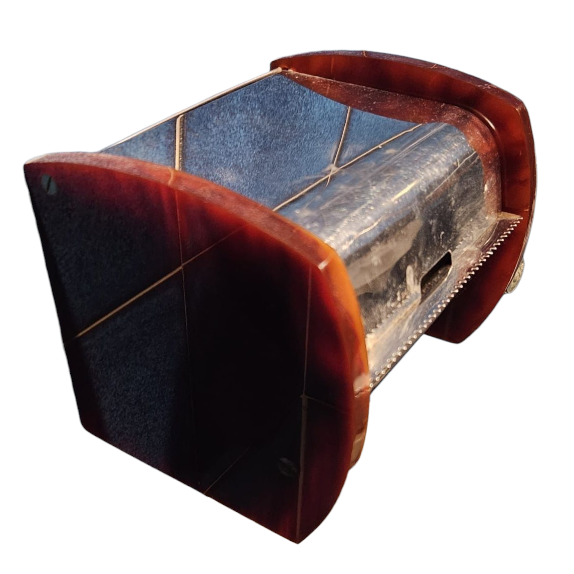Portarrollos de carey y acero. Medidas 12cm de ancho por 15cm de alto.