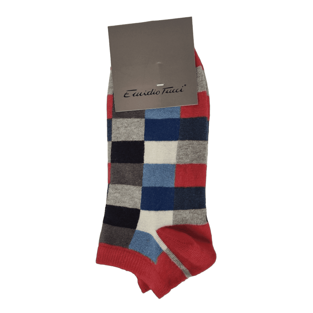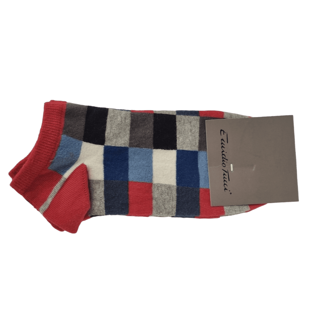 Calcetín de moda tobillero. Quedan ocultos con el calzado. Estampado en cuadros multicolor.