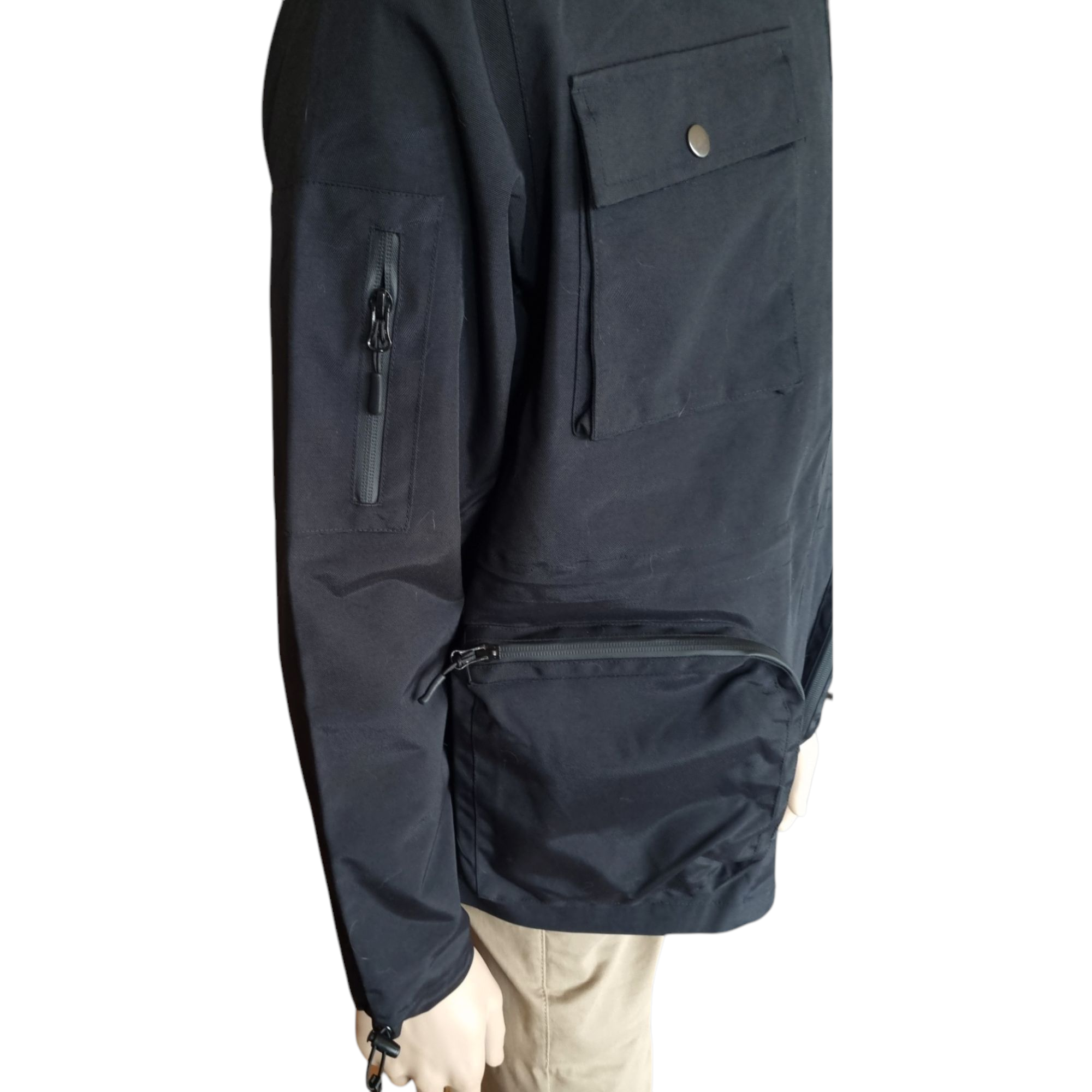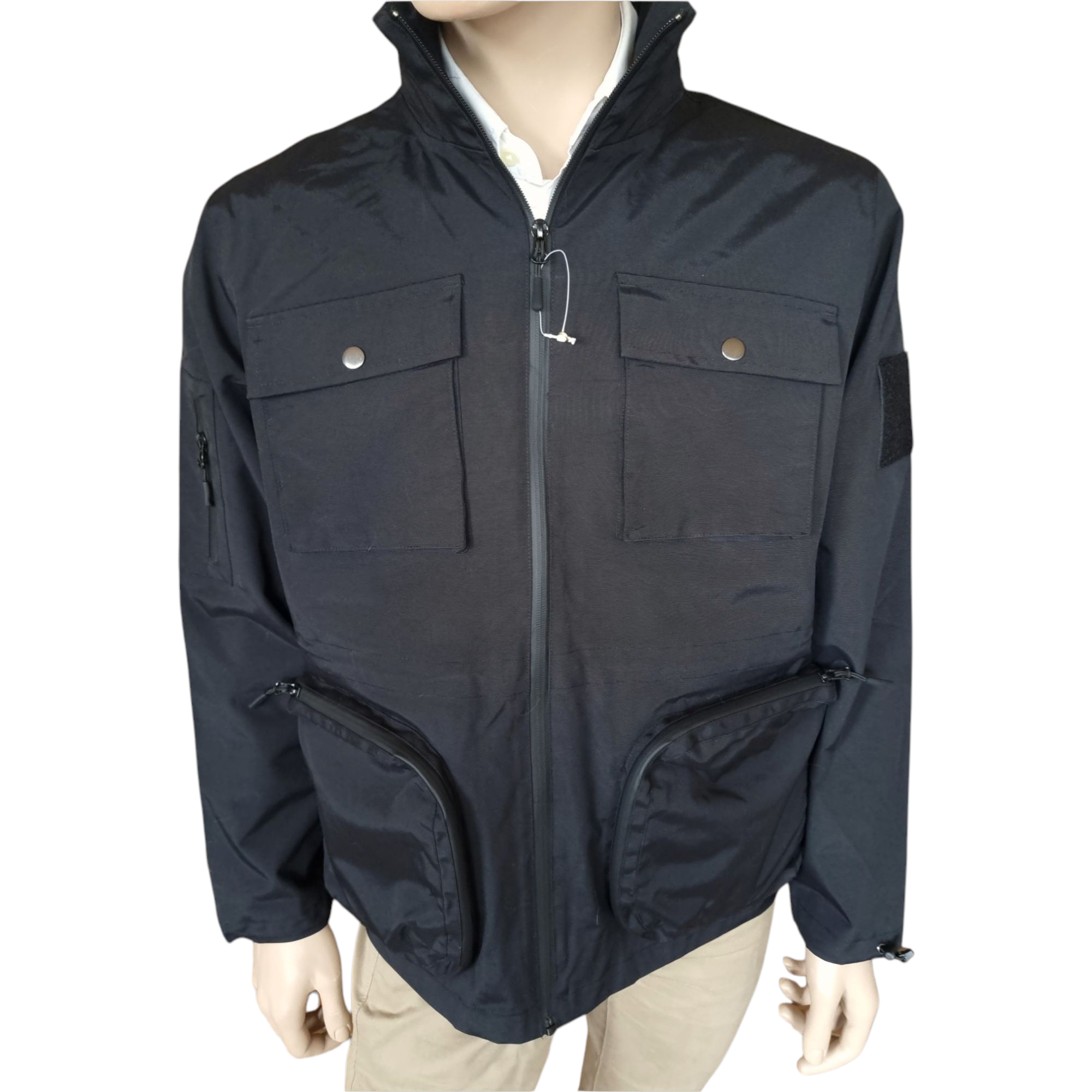 Chaqueta de transición ligera para hombre con múltiples bolsillos. Es cómoda de usar, ligera y con múltiples bolsillos que brindan un espacio de almacenamiento para todas las necesidades. Cierre de cremallera y cuello alto. Dispone de una capucha escondida en el cuello. Bolsillo grande en la espalda. Talla S