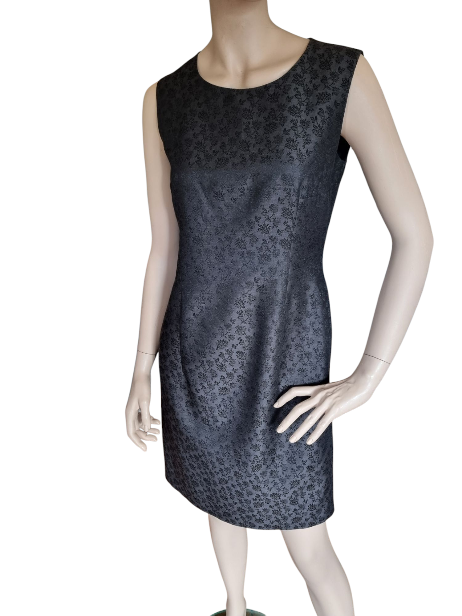 Vestido sin manga. Cuello redondo. Entallado. Cierre en espalda de cremallera. Pequeña abertura trasera. Forro interior de poliéster.