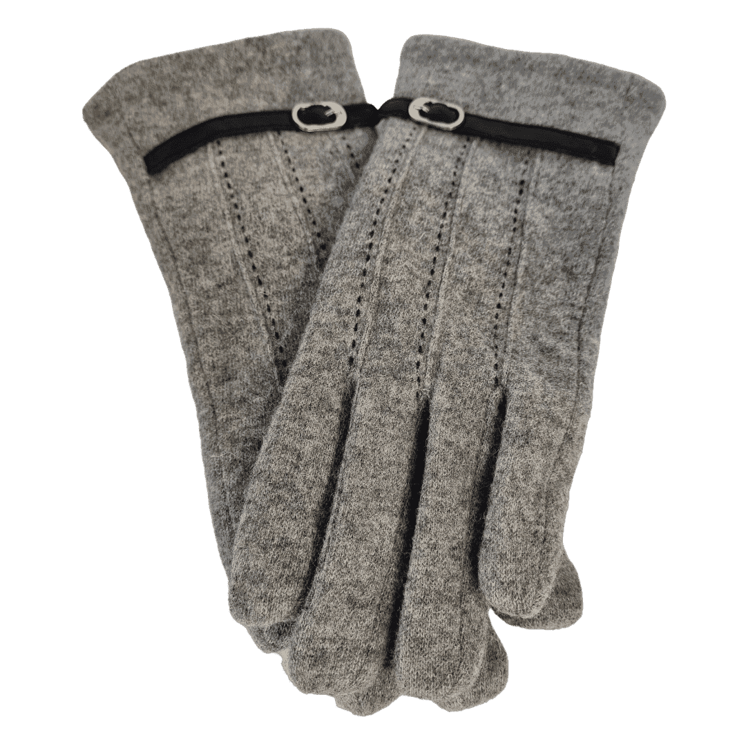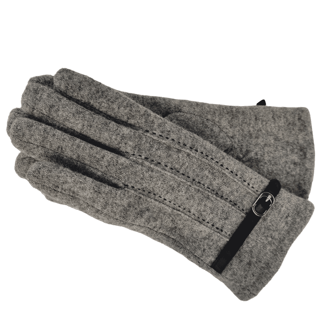 Guantes en color gris con aplique de hebilla y pespuntes en el frente. Forrado interior en pelo gris. Se adapta a cualquier tipo de talla y tamaño de mano. Tienen un pequeño elástico en la zona de la muñeca para que no entre el frio. Composición 80% Lana y 20% Poliamida