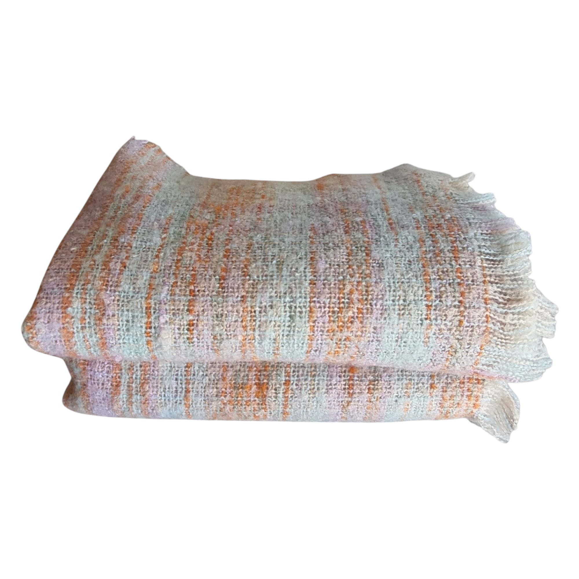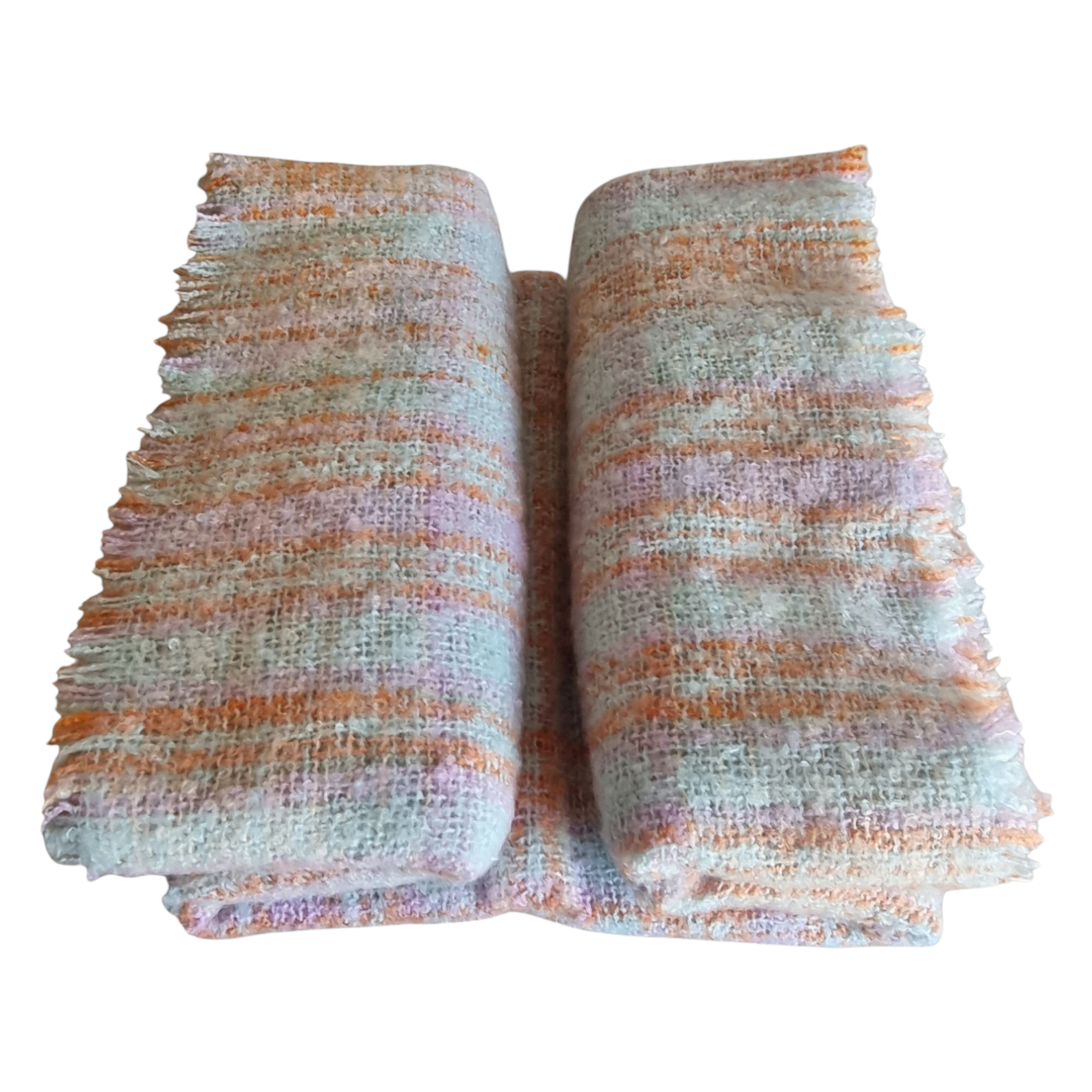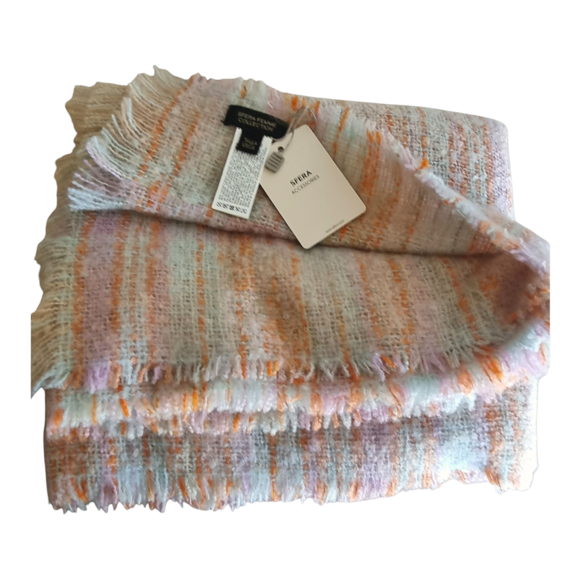 Maxi bufanda de mujer muy calentita, perfecta para los días más fríos. Muy suave y agradable al tacto, se completa con flecos en sus extremos. Una apuesta en tonos suaves, con un sutil estampado lineal. Ideal para darle luz a tus looks invernales.