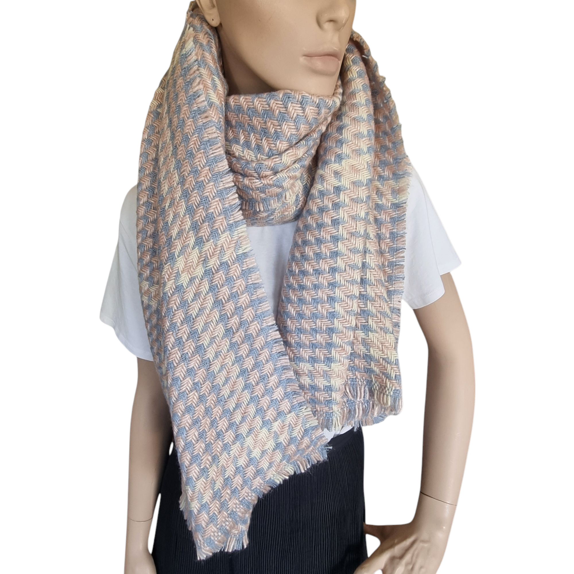 Gustosa maxi bufanda en colores pastel. Ligera y cálida. La bufanda tiene varios usos como chal o manta ligera en casa.