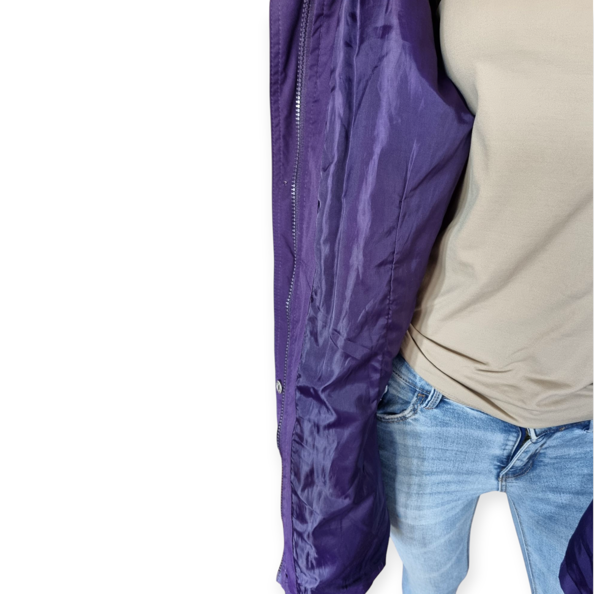 Parka impermeable ideal para cualquier temporada. Esta confeccionada en poliéster y presenta una silueta elegante con cinturón. Mangas con trabillas. Dos bolsillos delanteros superiores y dos inferiores. Cremallera escondida con tapa delantera. Cierres metálicos ( falta uno como se aprecia en la foto) Capucha ajustable desmontable con cierre de cremallera. Forro interior. Talla XXXL / 46 / 18