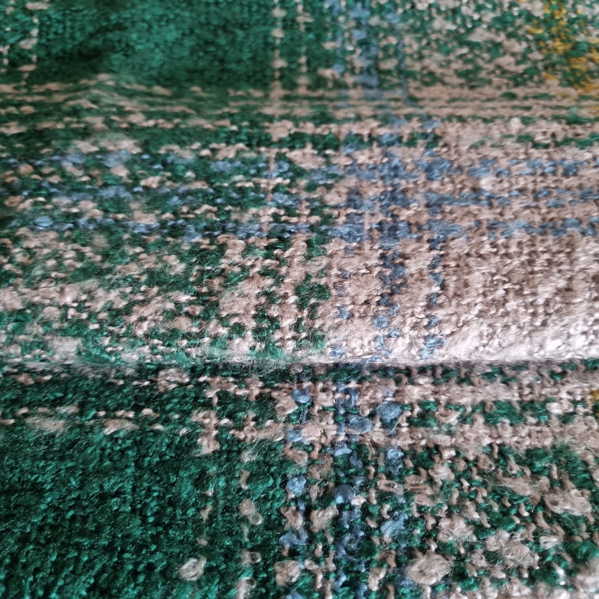 Pashmina suave de punto grueso a doble color en tonos verdes. Tiene flecos en los extremos. Amplia y cálida, ofrece la posibilidad de lucirla como chal o como bufanda de cuello.