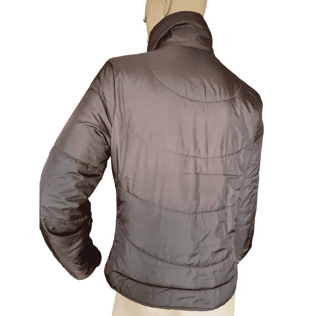 Chaqueta de abrigo con cremallera y bolsillos laterales. Bolsillo interno. Puños elásticos.