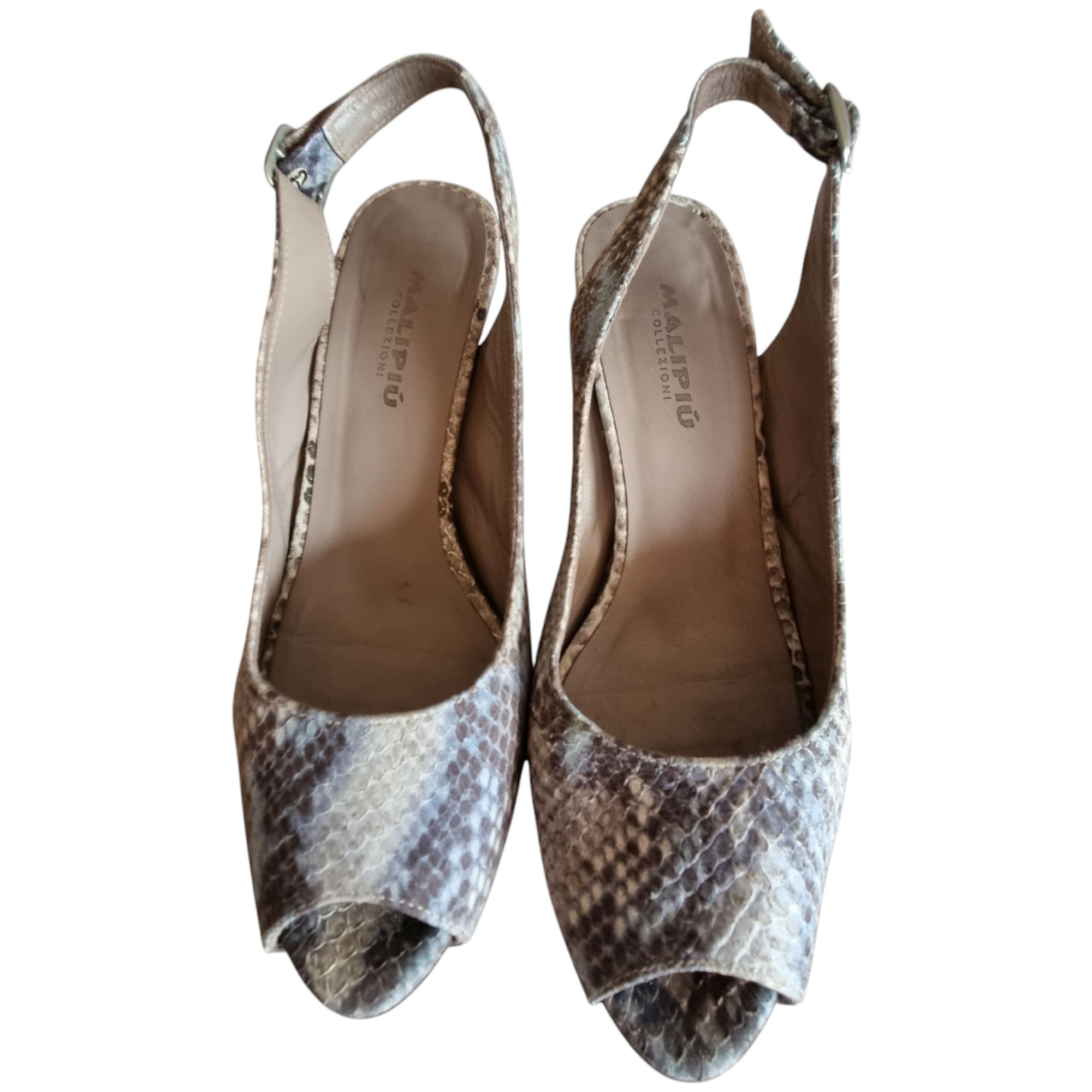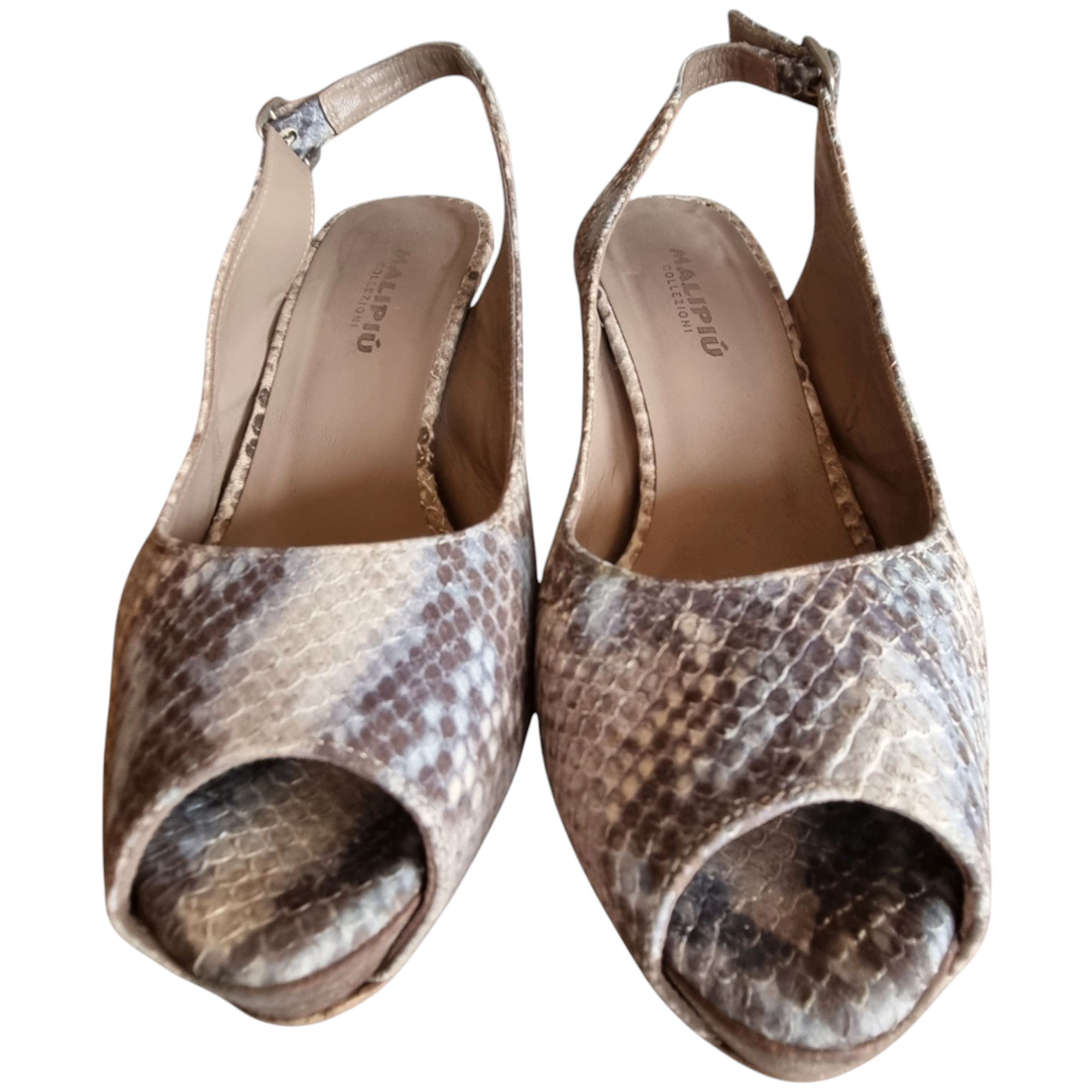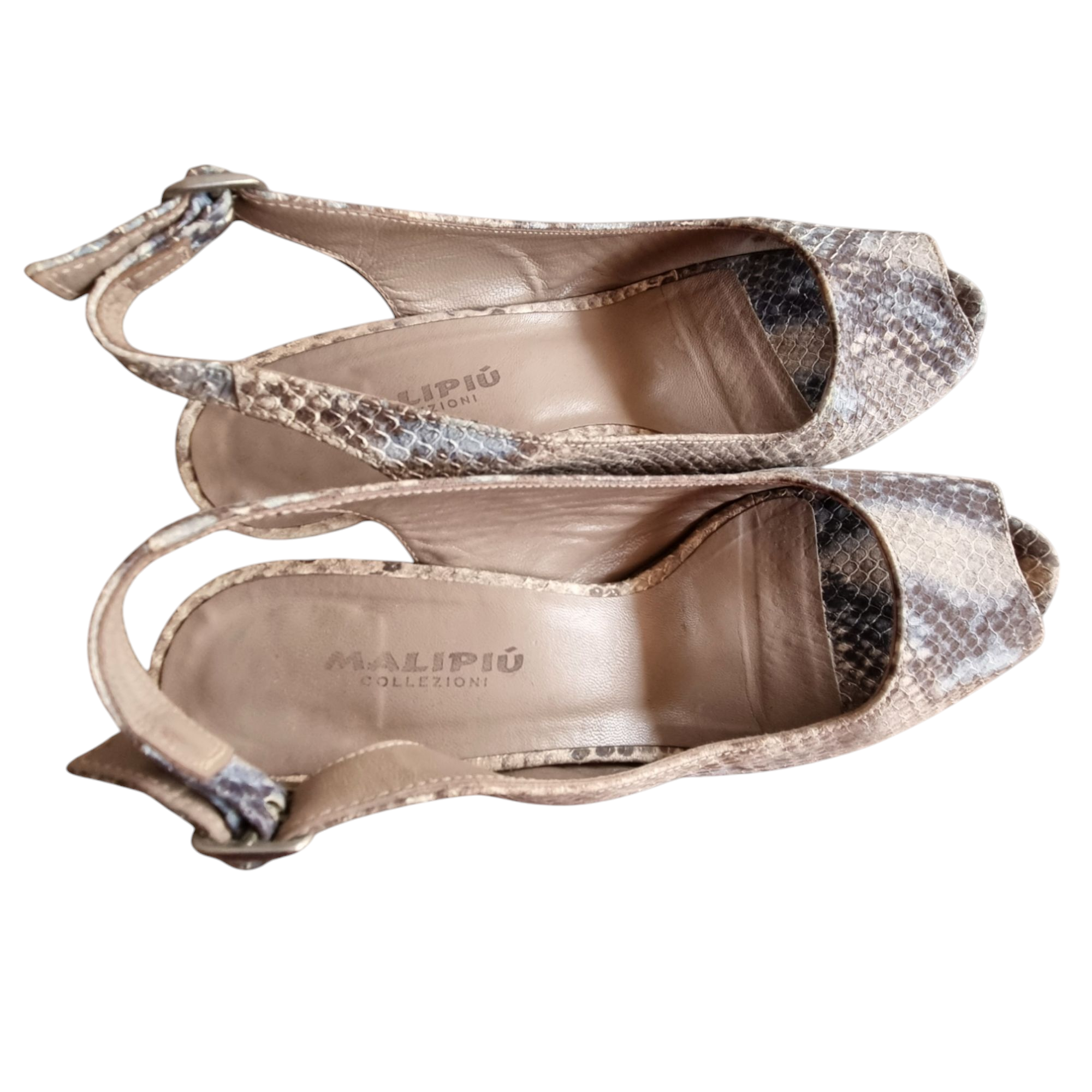 Sandalias de tacón de Malipiu Collezioni. Piel tipo serpiente. Cómodas y de tacón medio. Talla 39