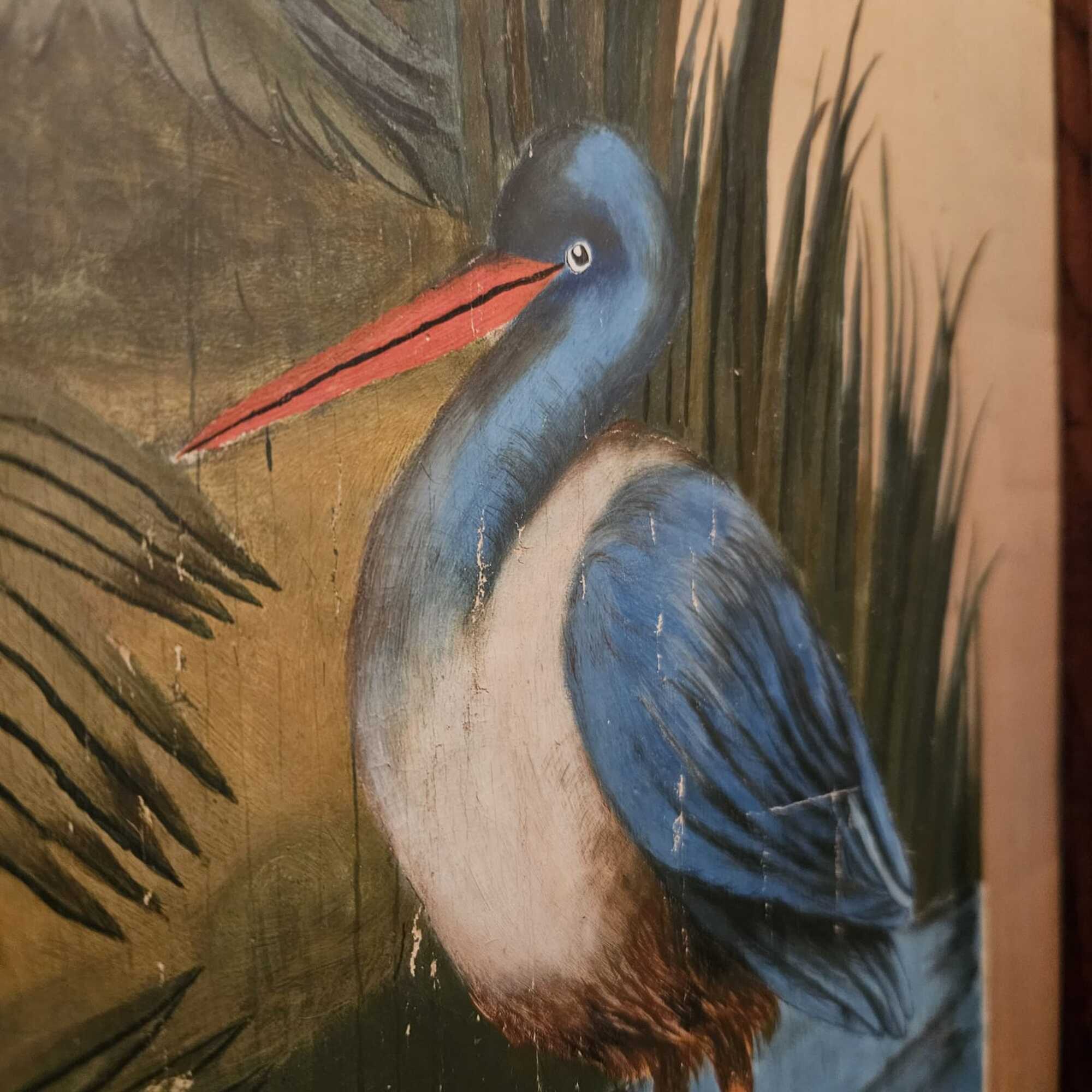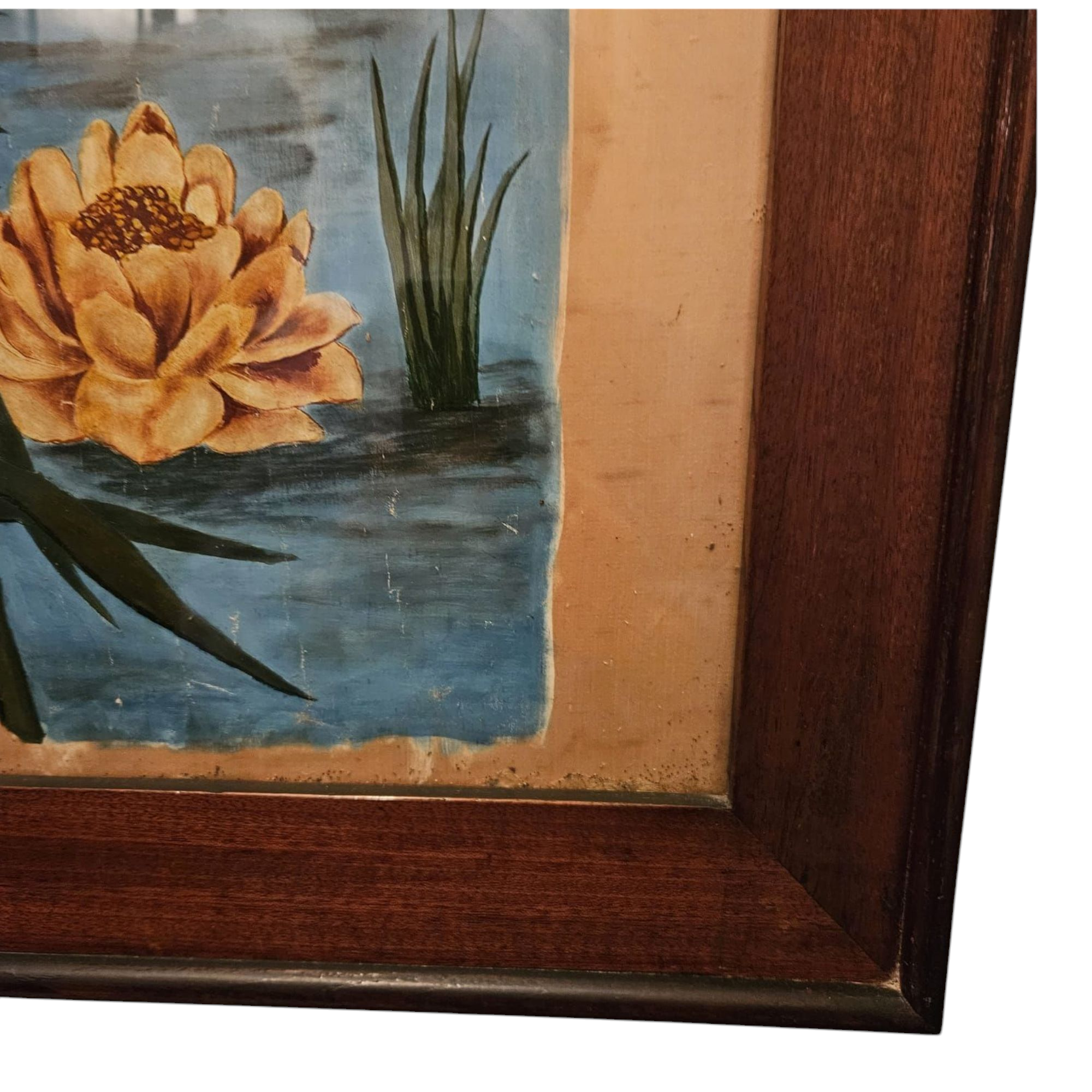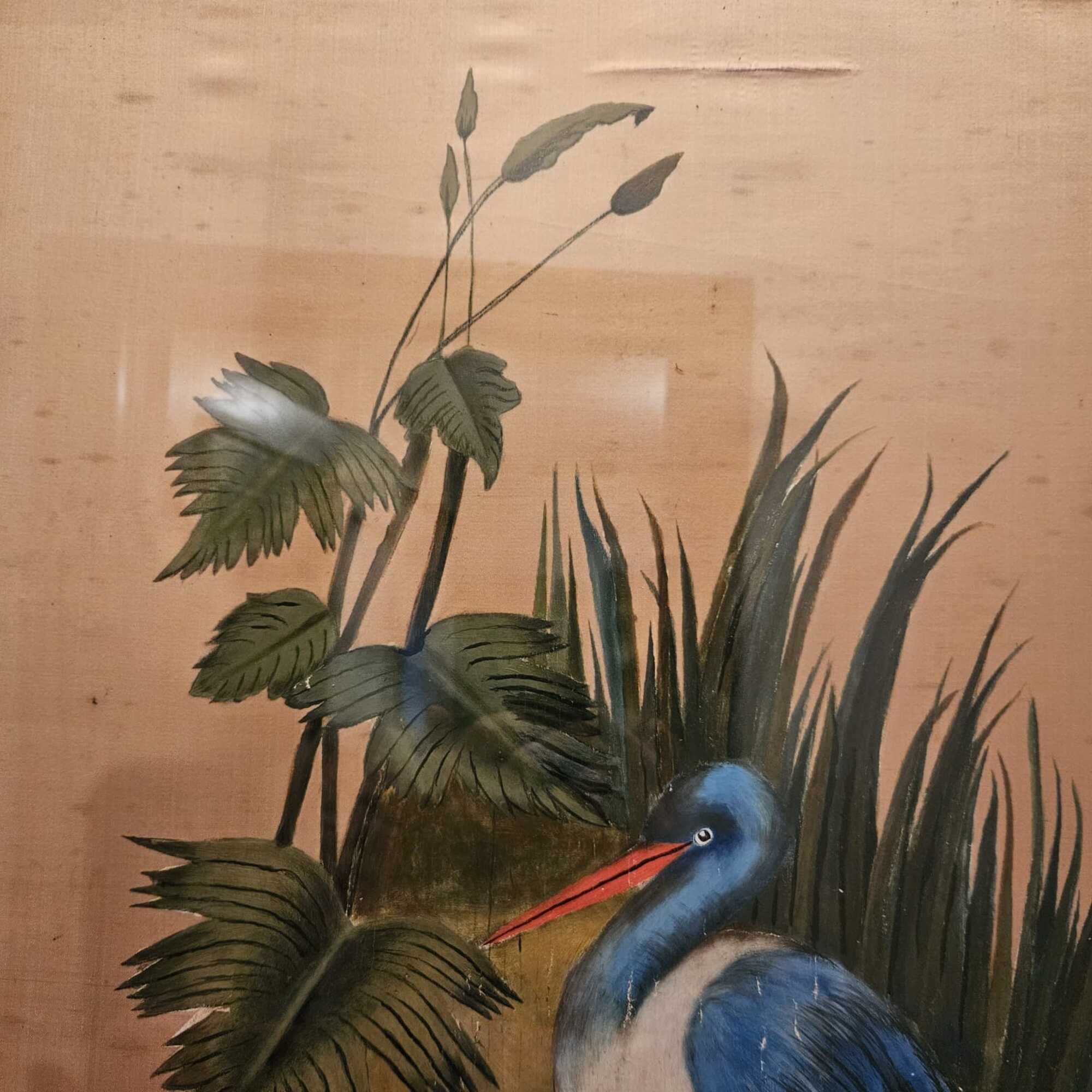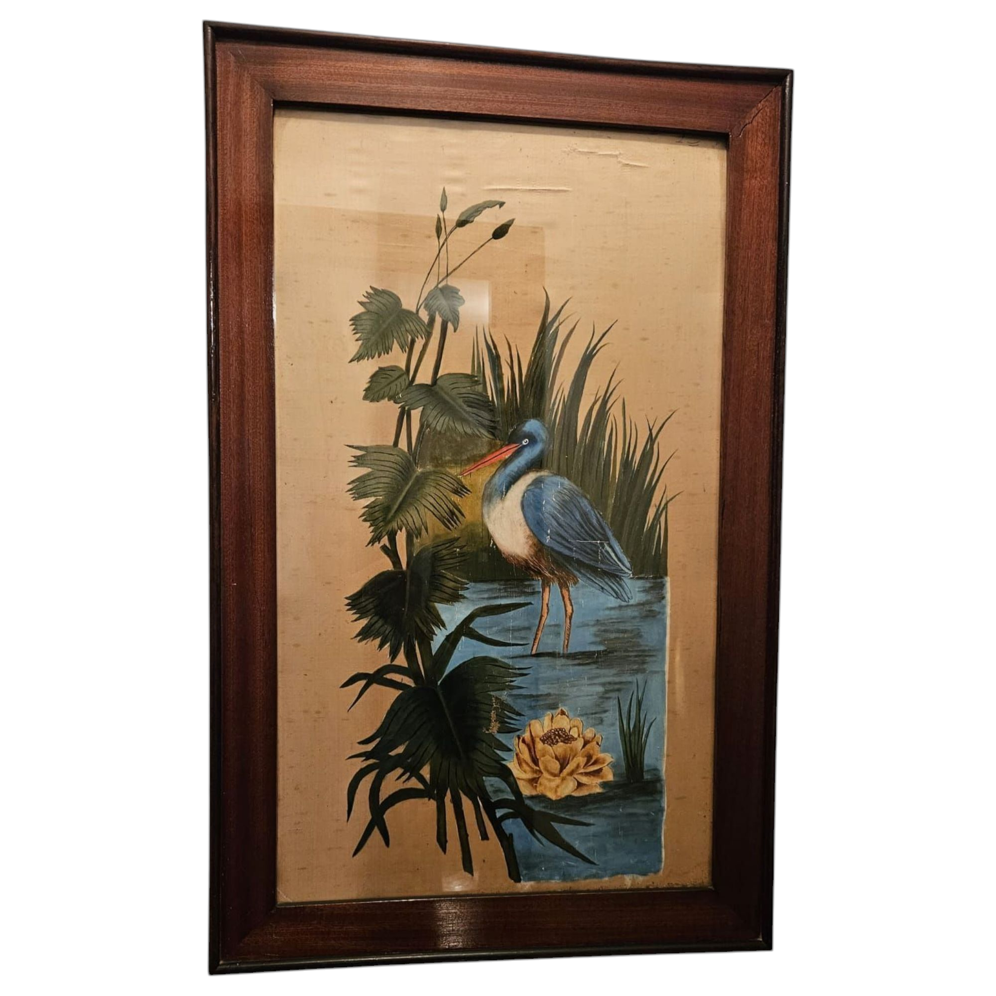 Seda pintada enmarcada con marco de caoba. Pequeños desperfectos en el marco que por su calidad merecen la pena restaurar.
