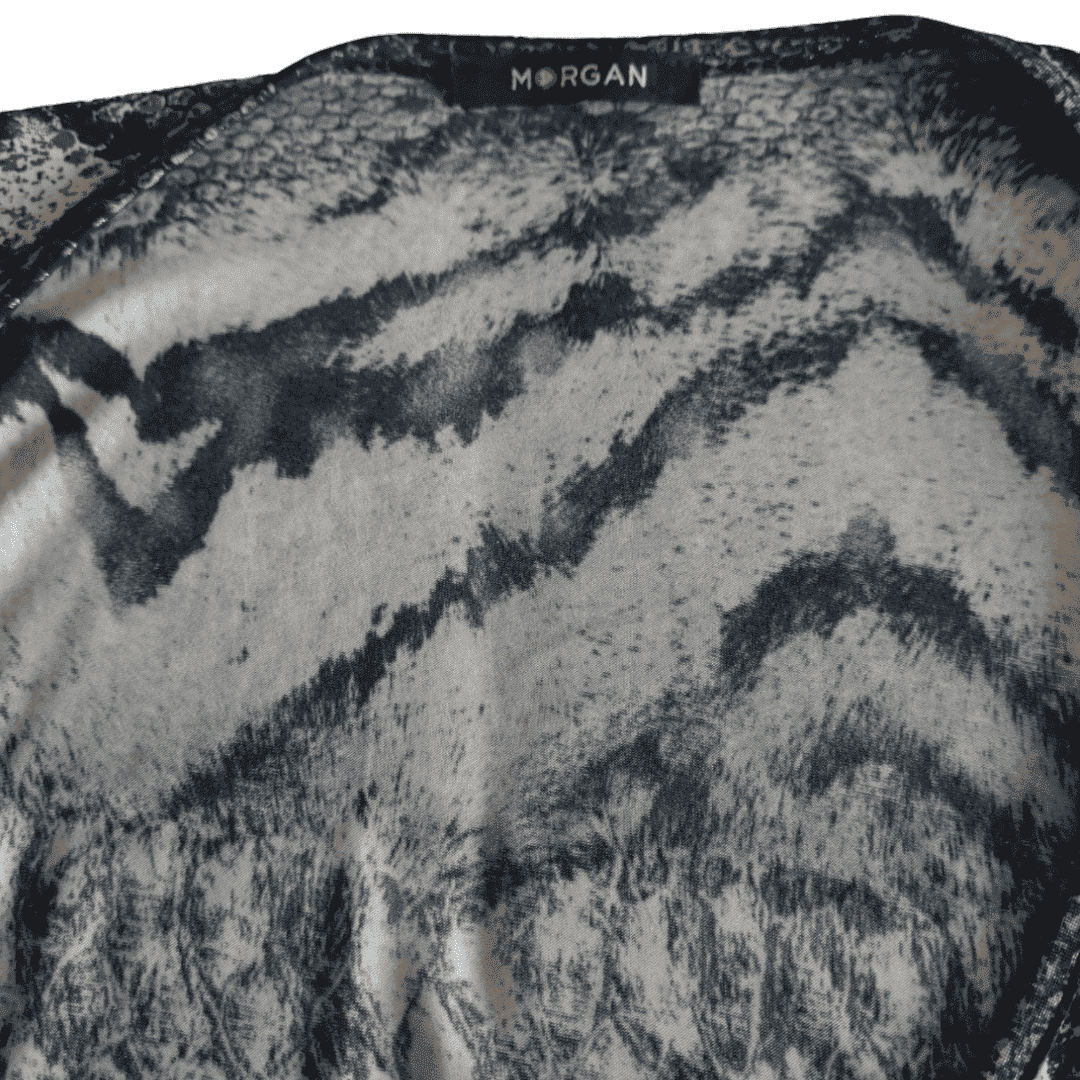Para cualquier ocasión este vestido te lucirá elegante por su diseño drapeado con aplicación en la cadera. Manga francesa. Cuello/escote pico cruzado. Largo por la rodilla. Tonos tostados y negros. Punto de seda.