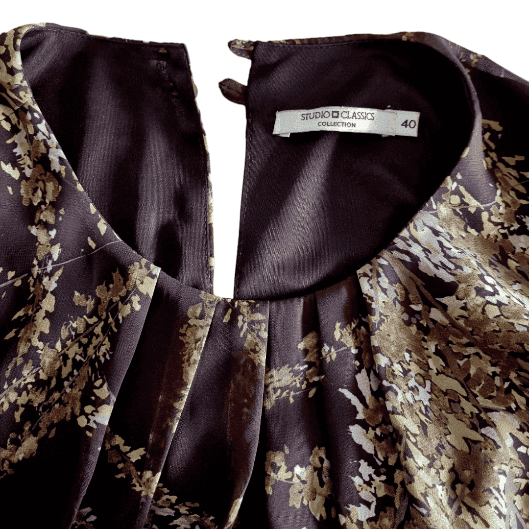 Vestido Manga Francesa Plisado de cuello redondo y con cinturón de Studio Classics.