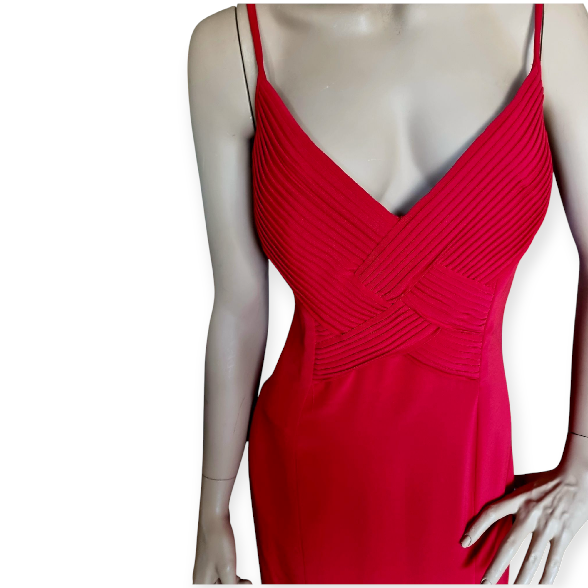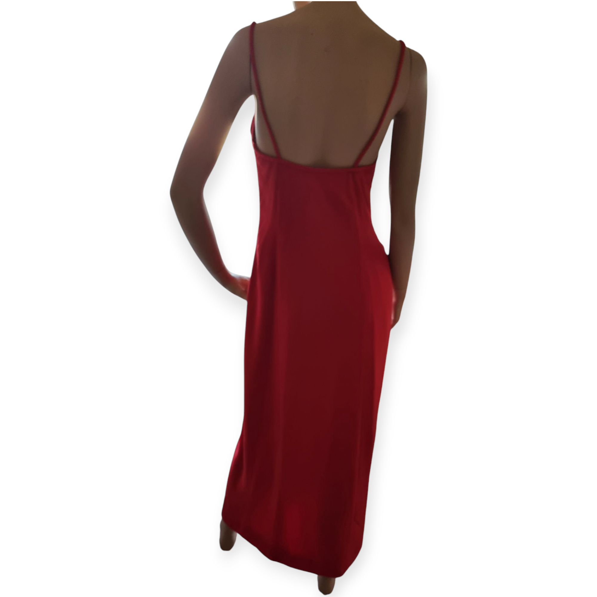 Vestido rojo perfecto para llamar la atención en cualquier reunión. Con un cierre de cremallera oculto en un lateral. Y cuerpo con lorzas que garantizan un ajuste perfecto. Su lujosa tela de Crep se complementa con una abertura en la costura lateral. Ligero relleno en las copas. Forro interior. Talla XL / 42 / 14